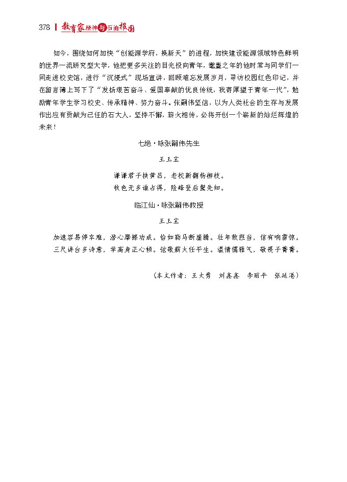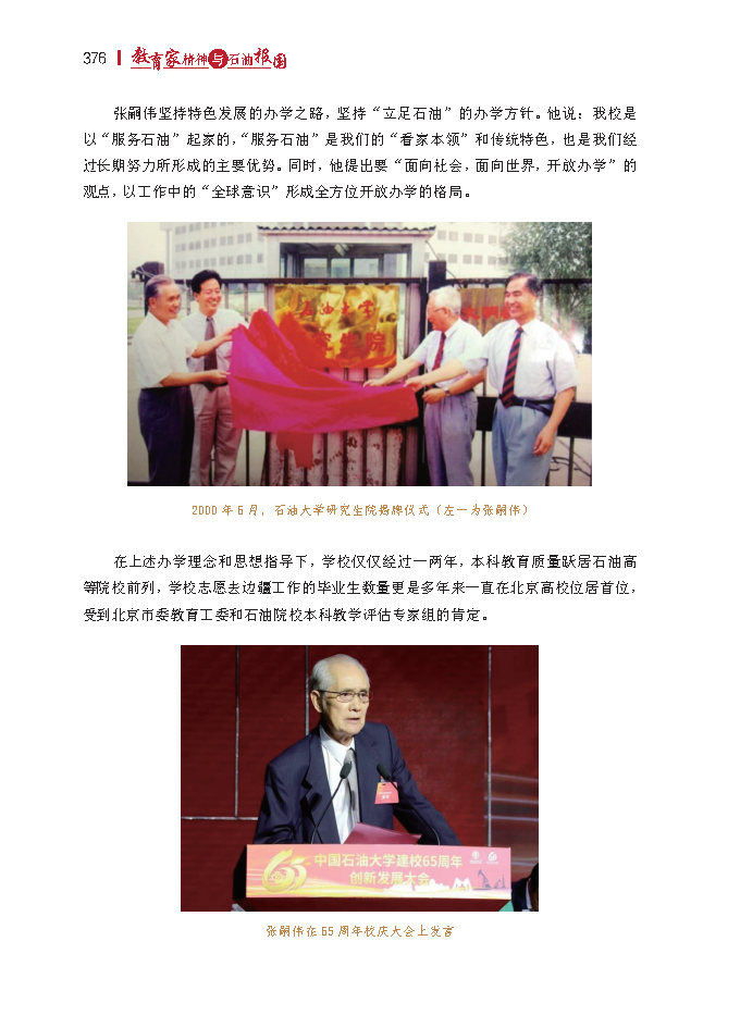 “人才培养质量是学校的生命线,在人才培养上必须狠下功夫,要以质量求生存,以质量求发展,以质量求声誉,要有‘精耕细作勤培育,不出英才誓不休’的气魄,这样,学校才有希望。”