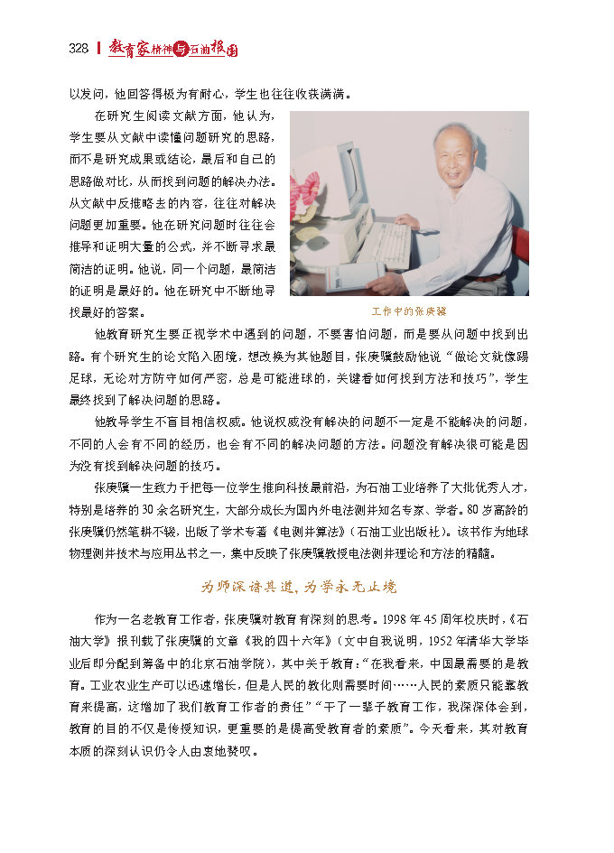“干了一辈子教育工作,我深深体会到,教育的目的不仅是传授知识,更重要的是提高受教育者的素质”。