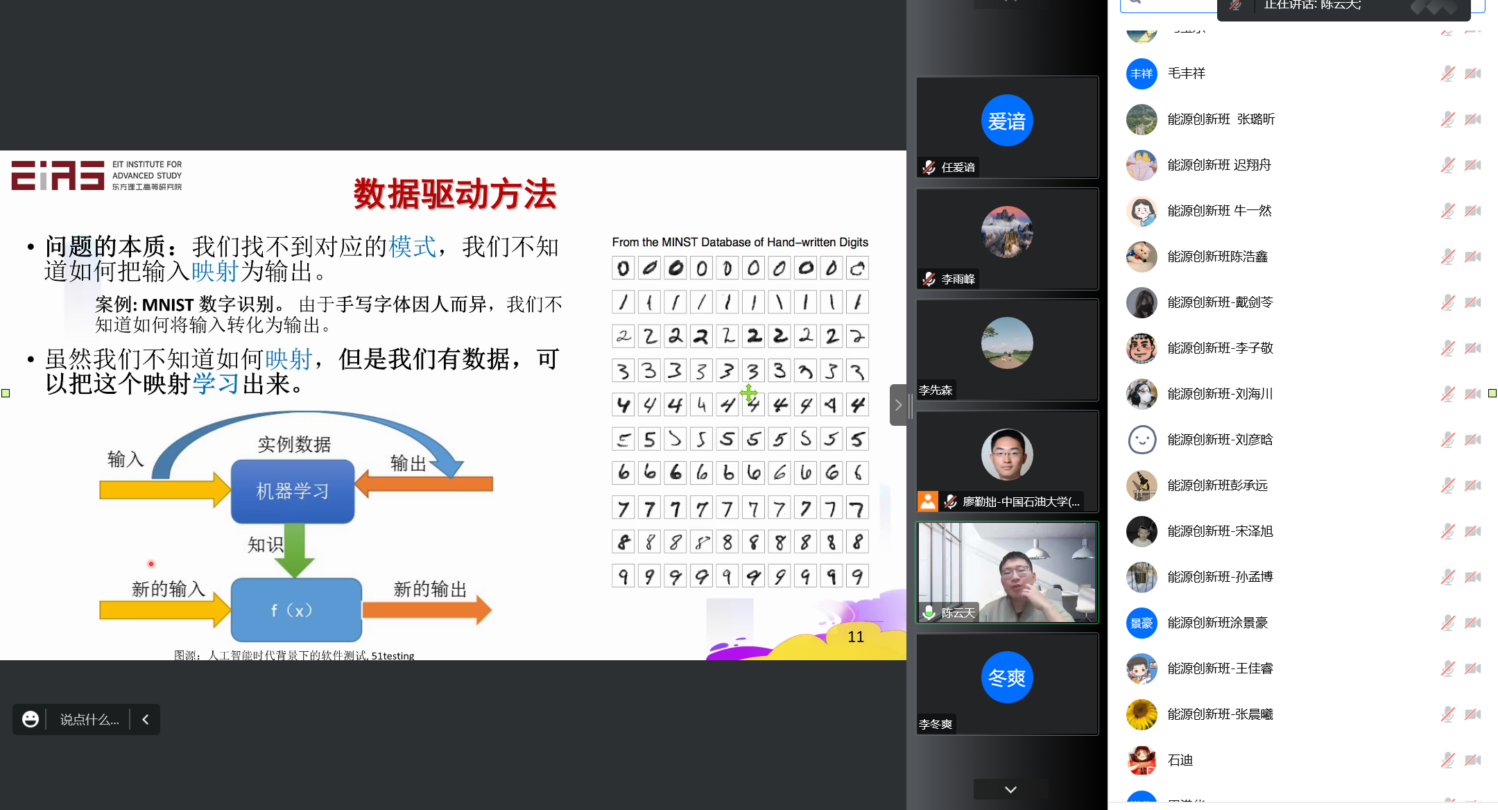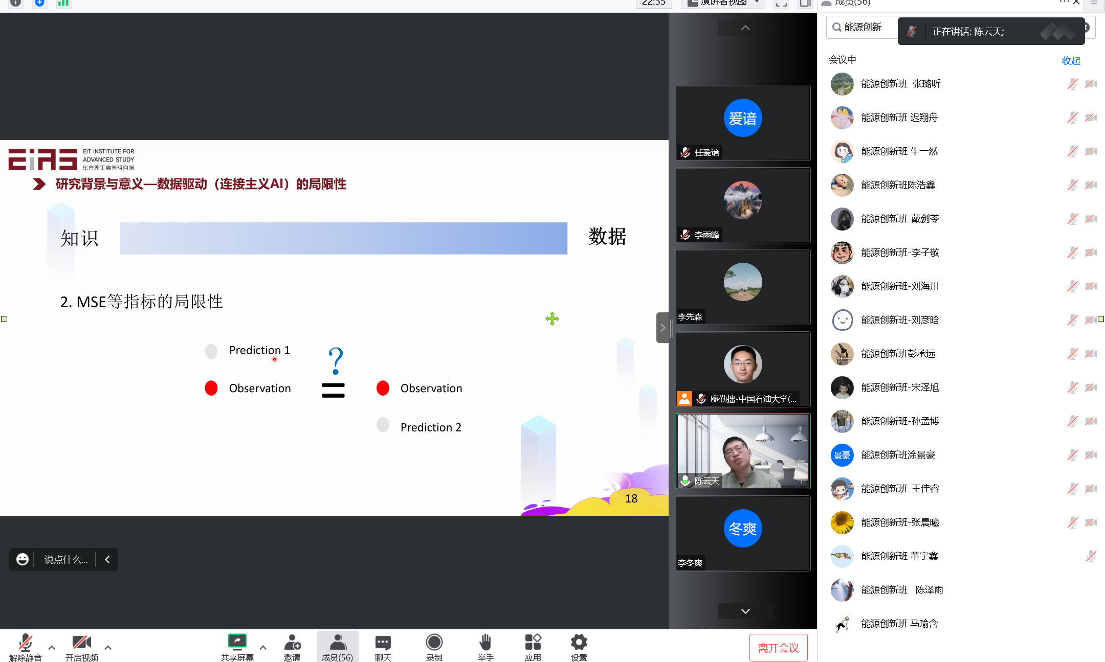12月18日晚7:00,东方理工高等研究院助理教授(副高、博导)陈云天受邀进行“智慧能源与科学机器学习”线上学术报告,碳中和示范性能源学院组织能源创新班22-1参加会议。