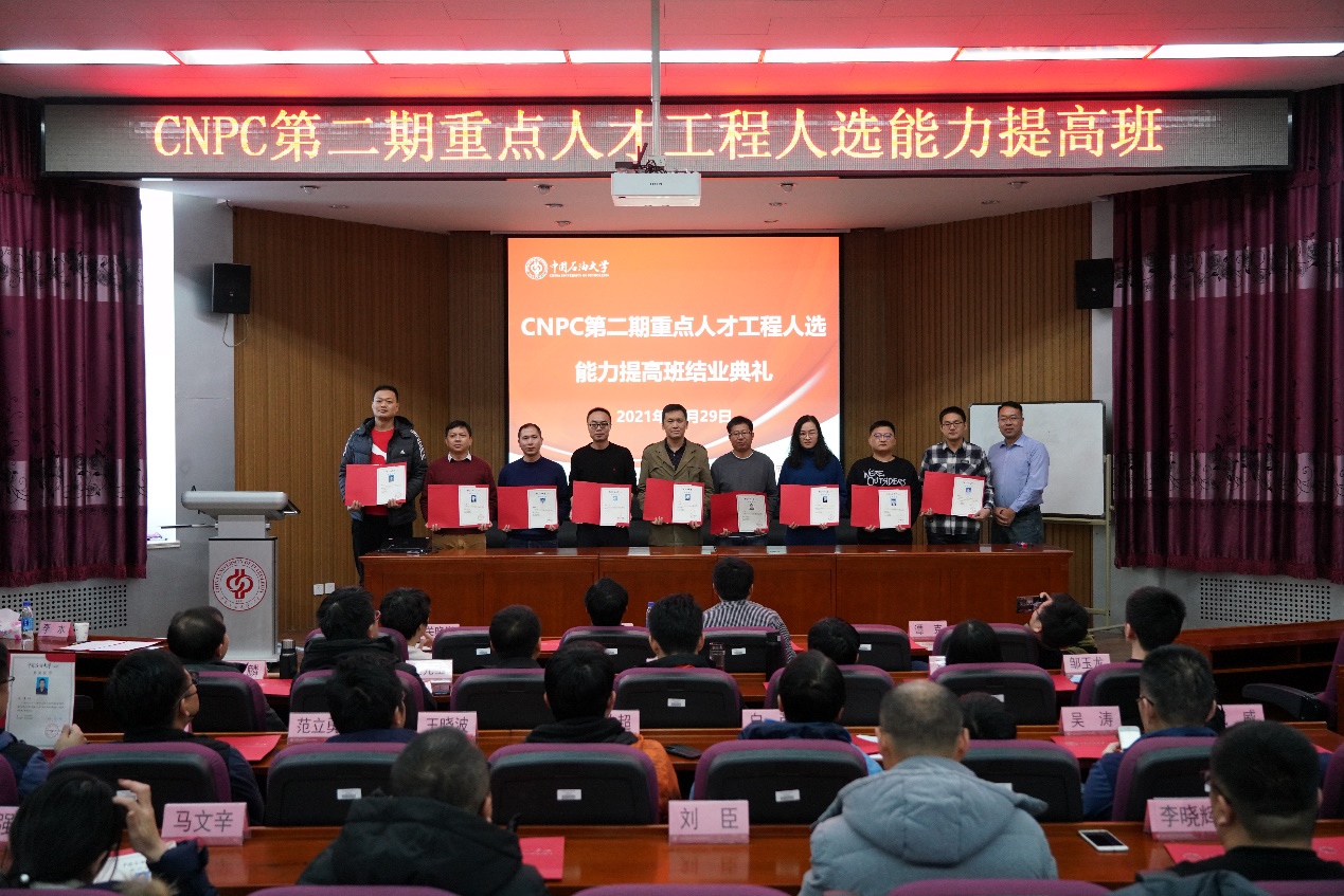 2021年12月29日,由中国石油大学(北京)网络与继续教育学院承办的“中国石油天然气集团有限公司第二期重点人才工程人选能力提高班”举行结业典礼,中国石油大学(北京)网络与继续教育学院总支书记兼副院长李水出席结业典礼并讲话,结业典礼由网络与继续教育学院教育培训中心主任董刚主持。