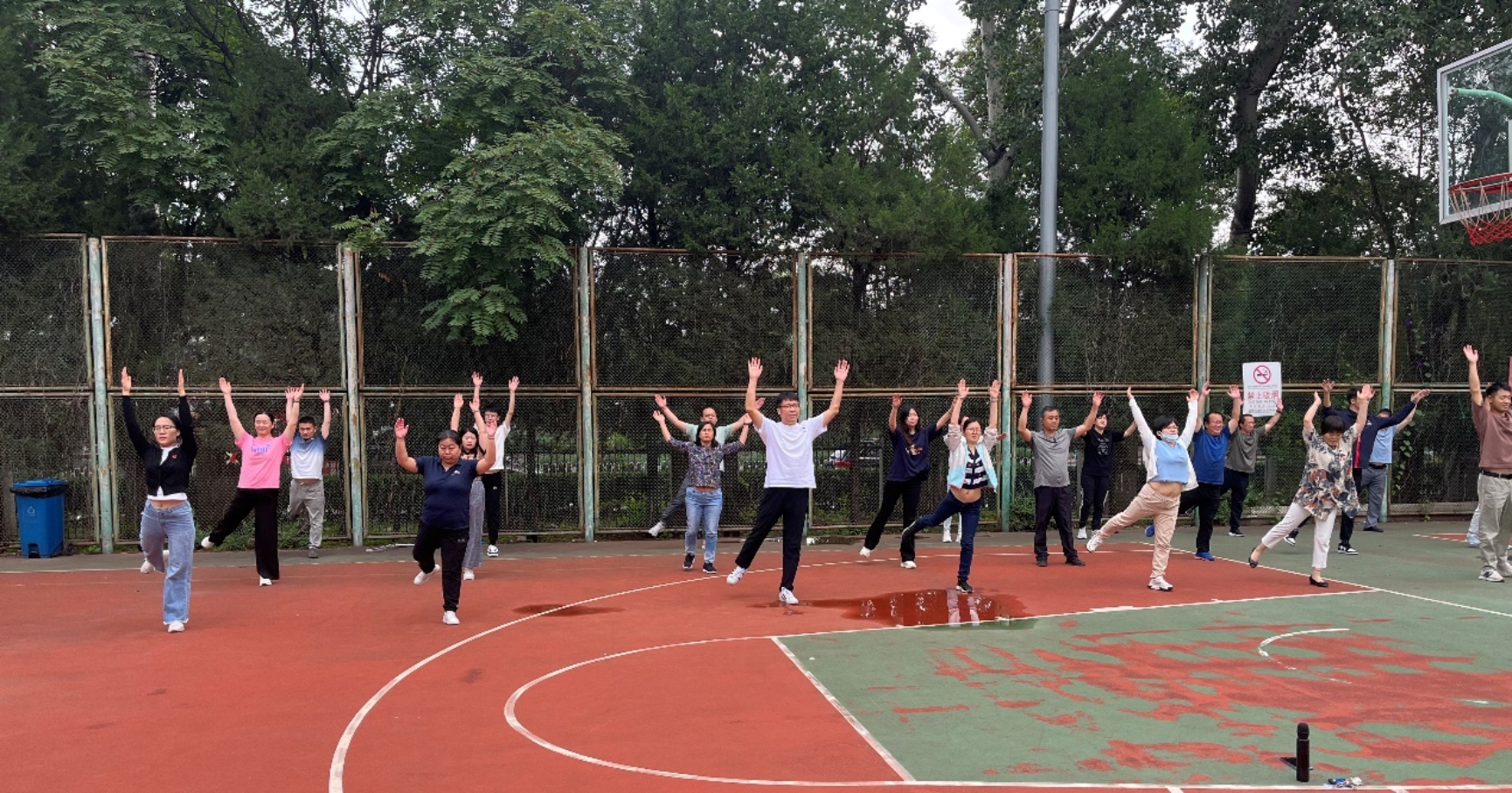 为了响应校工会开展工间操活动通知要求,切实提高学院教职工身体素质,营造健康向上的良好工作氛围,化工学院工会每日上午10:05至10:15在化工楼下篮球场开展工间操活动,提出号召“每天锻炼十分钟,健康生活一辈子”,倡导学院教职工劳逸结合,培养健康生活方式。