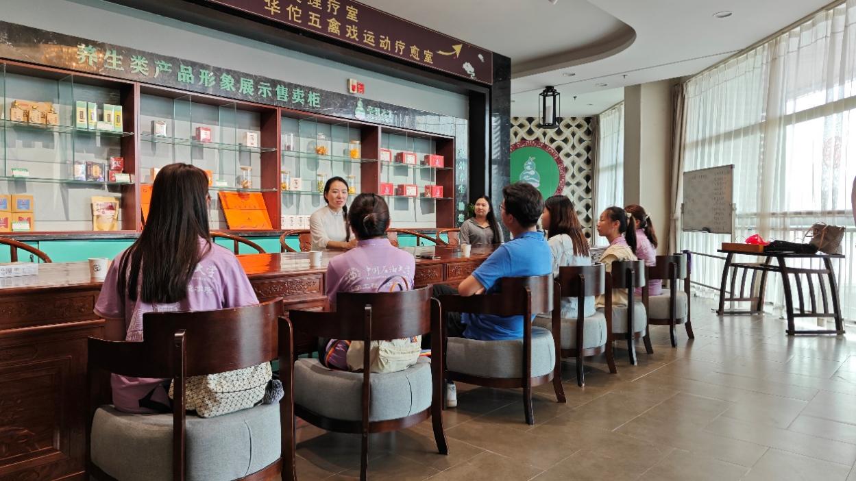 实践团成员随华一步入华一堂养生馆,学习将中医原理运用于调理和养生的方式。华一在华佗百草园为团队成员们表演五禽戏,每个动作彰显力量和动物独有的特征。