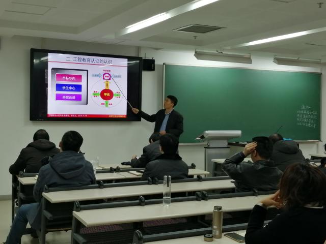 会上,吴志杰老师从“工程教育认证新发展”、“工程教育认证的认识”以及“认证材料的准备”三部分给学院参会老师进行了培训,交流了近期工程教育认证一些新动向。黄星亮老师对报告内容进行了进一步的解读,特别是对OBA和OBE理念进行了重点阐述。