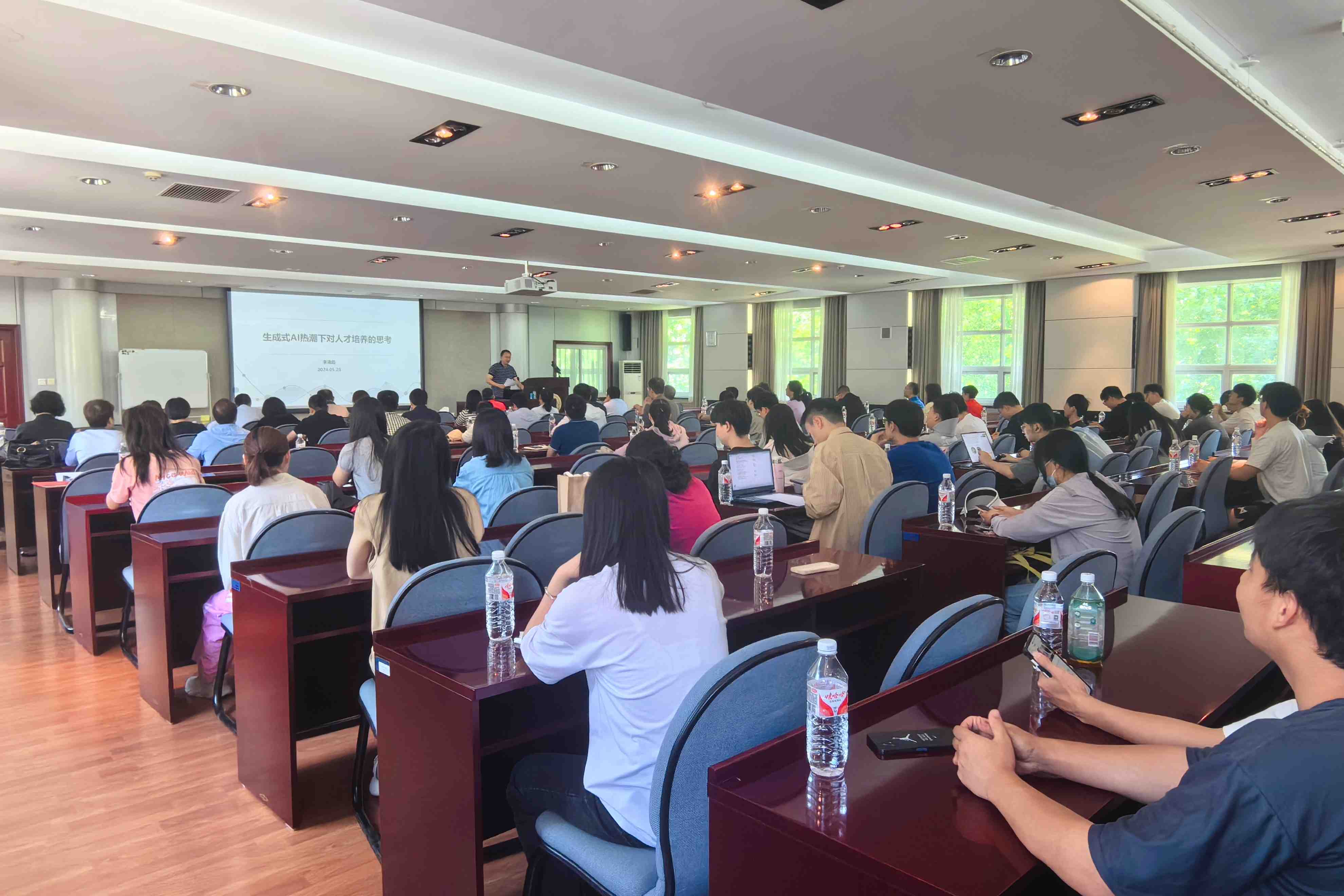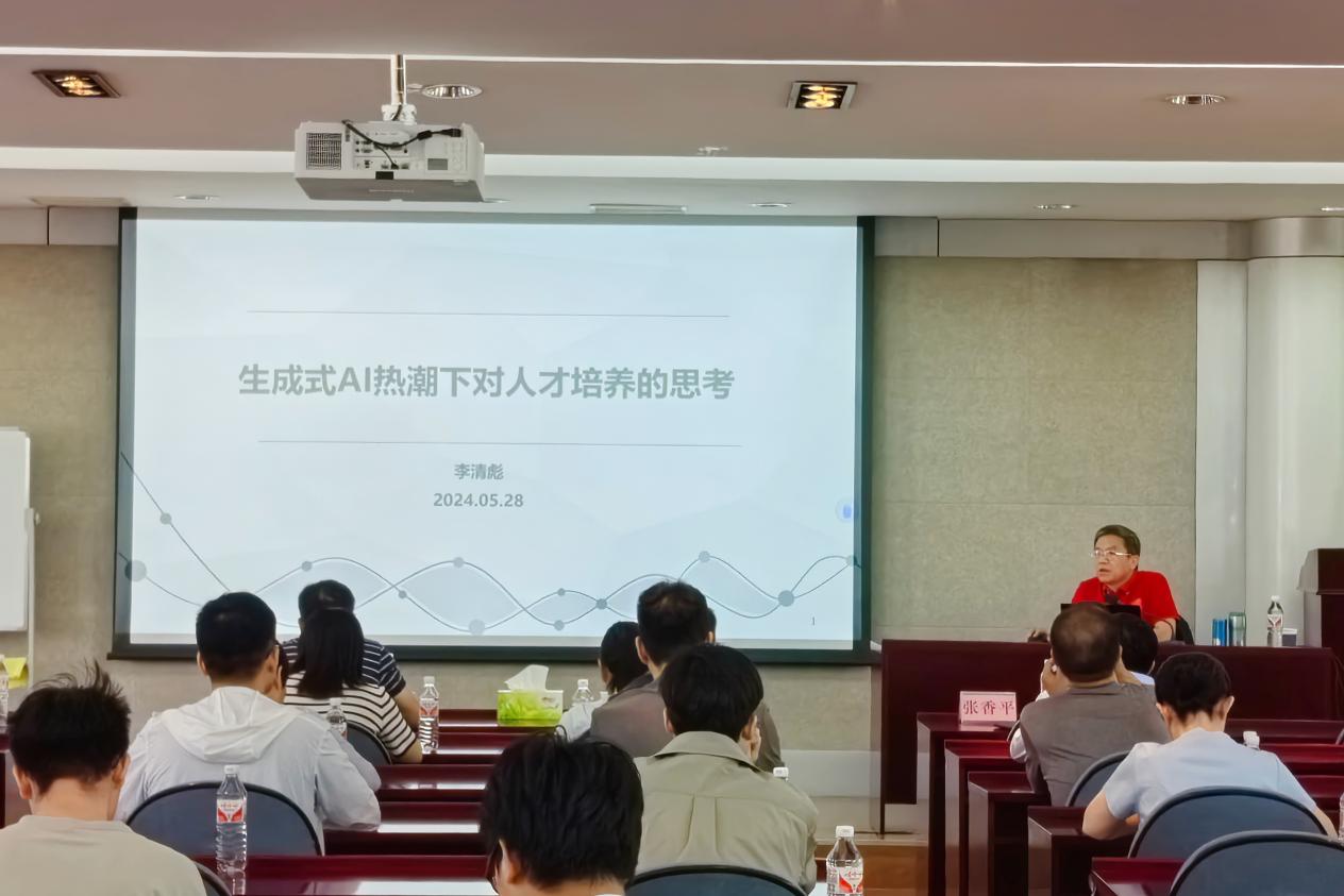 5月28日上午,化学工程与环境学院联合教务处举办了一场关于“生成式AI热潮下对人才培养的思考”的专题报告会。此次报告会特邀了中国化工学会会士、知名专家李清彪教授作为主讲嘉宾。教务处、化学工程与环境学院师生代表等共同出席了此次活动,报告会由教务处处长张永学教授主持。