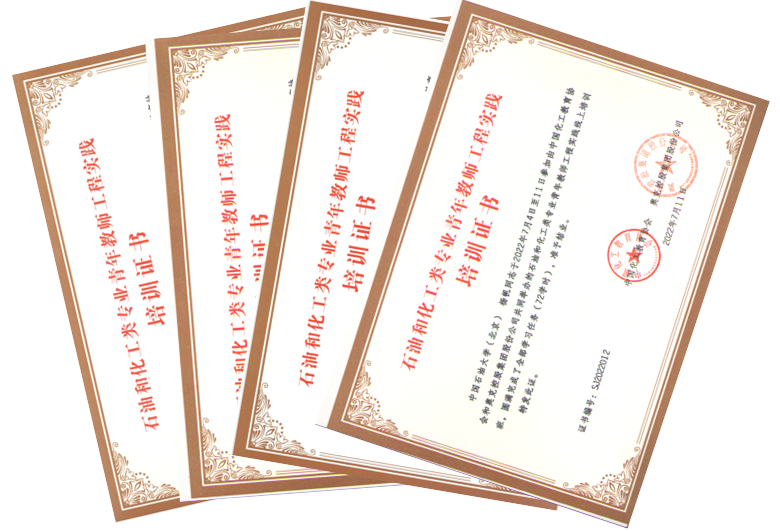 2022年初至今,学院组织了3批教师参加工程能力培训,分别采用线上及线下学习的方式,30余名教师分别参加了北京中智伟业技术培训中心、中国石油和化学工业协会培训中心联合组织及中国化工教育协会与奥克股份集团股份公司联合举办的石油和化工类专业青年教师工程实践培训,并获得了培训结业证书。