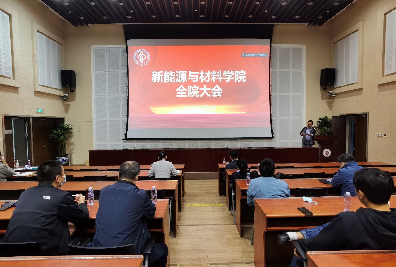10月6日下午,新能源与材料学院在主楼C308会议室召开全院大会,会议由学院党委书记叶海木主持,学院全体教职工参加会议。