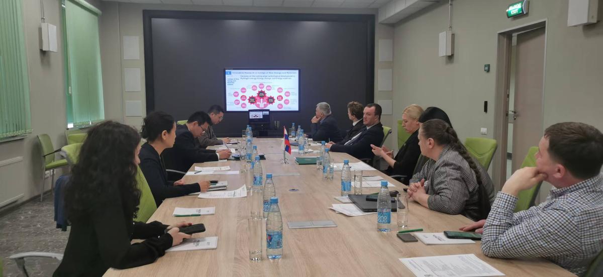 随后,李景叶一行拜访了俄罗斯古勃金石油天然气大学,与主管国际事务副校长马克西民科(A.F. Maksimenko)会谈。会上,李景叶对古勃金石油天然气大学95周年校庆表示祝贺。他回顾了两校的合作历史,并详细介绍了中石大在新兴领域开展的工作。马克西民科对中石大在人工智能等领域取得的进展表示赞赏,期待能够在学生联合培养、共建中俄碳中和AI联合实验室等“一带一路”特色科研平台等方面进一步加强合作。