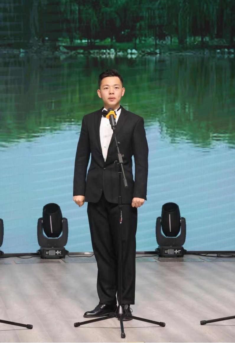此后张益博更是在这条“爱戏”的路上披荆斩棘、一往无前。他曾荣获天津市学生艺术节戏曲组一等奖,与天津市河北梆子剧院的陈春、李斌、北京市河北梆子剧团王洪玲、张树群等多位戏曲名家进行深入交流学习;与中国评剧院评剧名家王丽京老师、央视著名主持人白燕升老师多次进行戏曲发展的交流探讨;他还曾被北京市河北梆子剧团团长、党的二十大代表王洪玲老师写入党的二十大个人专访中。