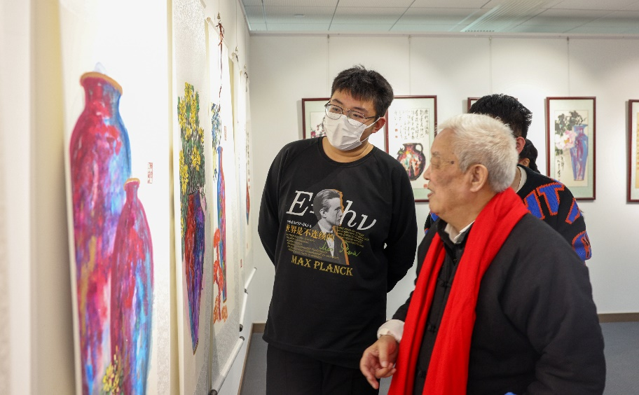 学校党委副书记雷玉江,钧瓷画作者余世诚教授,党委宣传部、离退休工作处、体育与人文艺术学院主要负责人以及离退休教师、在校师生代表近40人参加开展仪式。