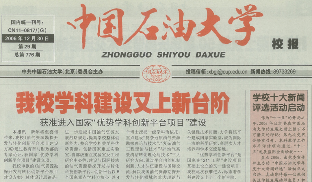 202229日,教育部、财政部、国家发展改革委发布《关于公布第二轮双一流建设高校及建设学科名单的通知》,学校再次入选第二轮双一流建设高校,地质资源与地质工程、石油与天然气工程两个学科入选第二轮双一流建设学科,这也是学校在建设能源领域特色鲜明的世界一流研究型大学的前进道路上迈出的重要步伐!