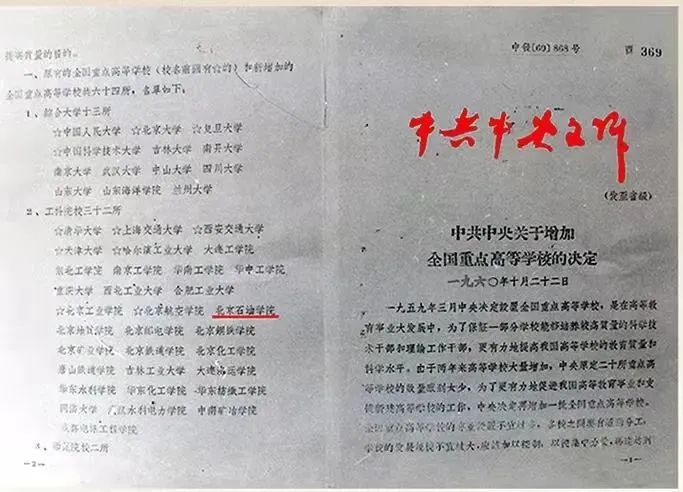 19601022日,中共中央发布(60868号文件,宣布将全国重点高等学校增加到64所,北京石油学院成为第二批44所重点高校之一,从此跻身全国重点高校行列。