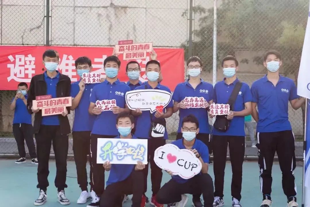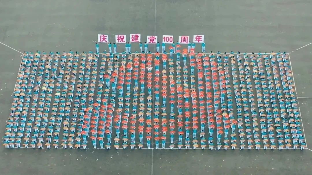 在红旗操场还曾留下中石大师生对建党百年的深情献礼。在学校2021年春季田径运动会上,师生在精彩的团体操方阵表演中通过不断变换队形,摆出“100”“1921”“2021”“CUP”等字样以及“党徽”等标志,这是对中国共产党百年华诞的深切祝福,是用行动践行着将青春献给党的郑重承诺!
