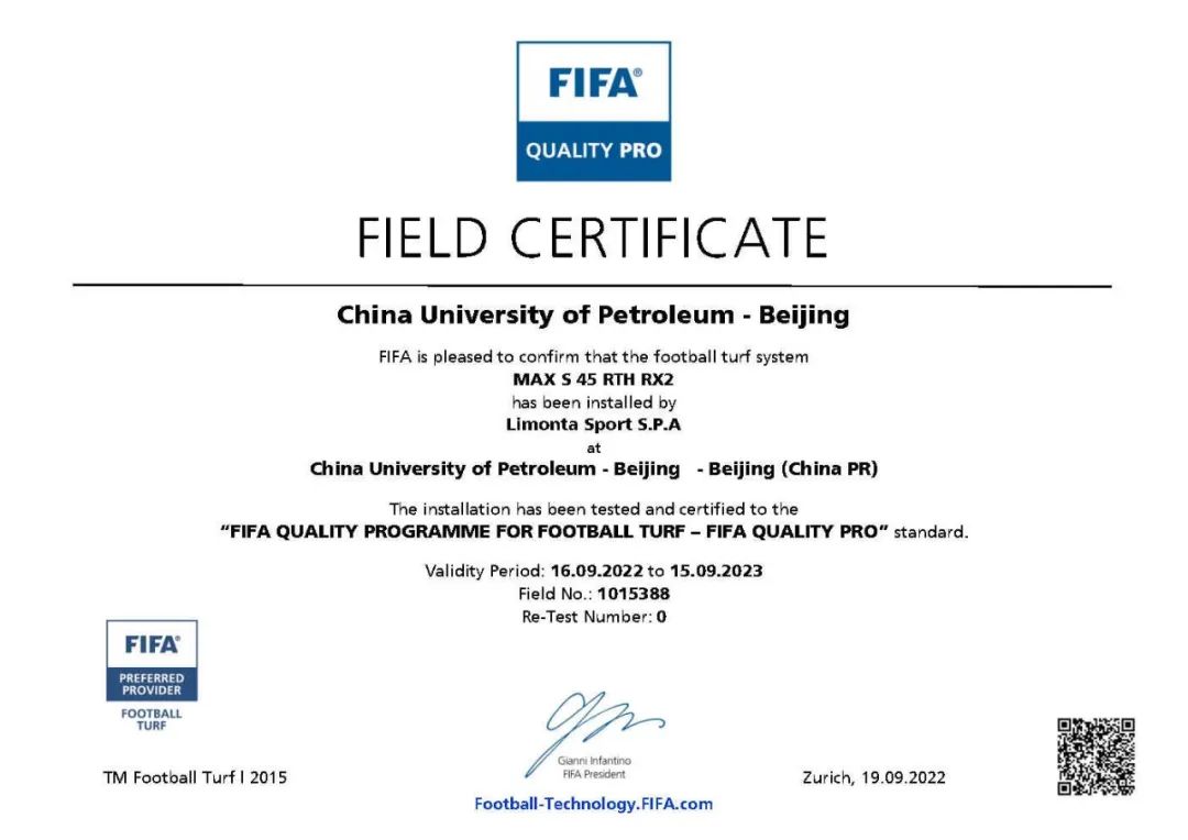 那抹绚烂动人的跑道红,那片青春跃动的草坪绿,红旗操场伴随着一代又一代中石大人成长。近日,TA也 “成长蜕变”啦!完成了改造升级,并通过国际足联足球草皮质量计划全项检测,获最高等级FIFA Quality Pro认证证书。