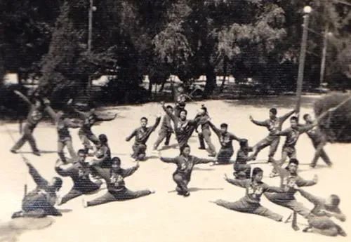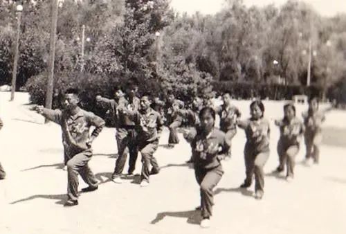 中石大师生在红旗操场上进行艰苦的训练