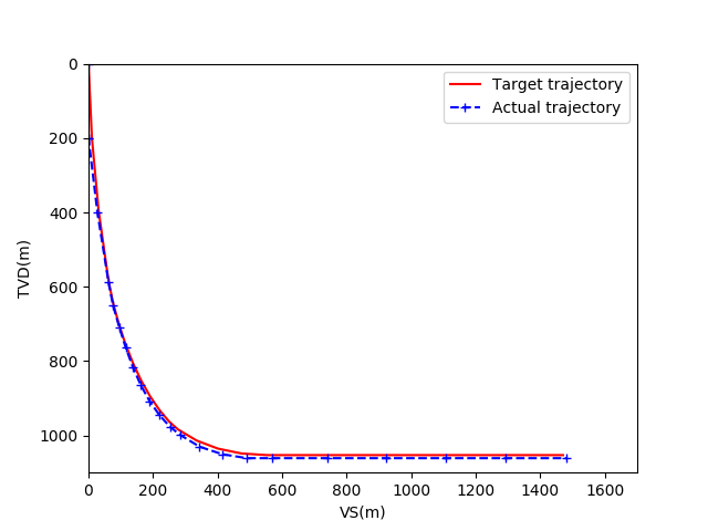 可以看出,在收敛后两模型的跟踪效果基本一致,均能完成对预设井眼轨道的跟踪任务。