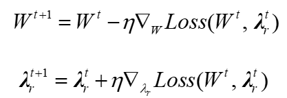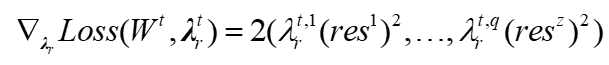 自适应权重梯度更新方程如下: