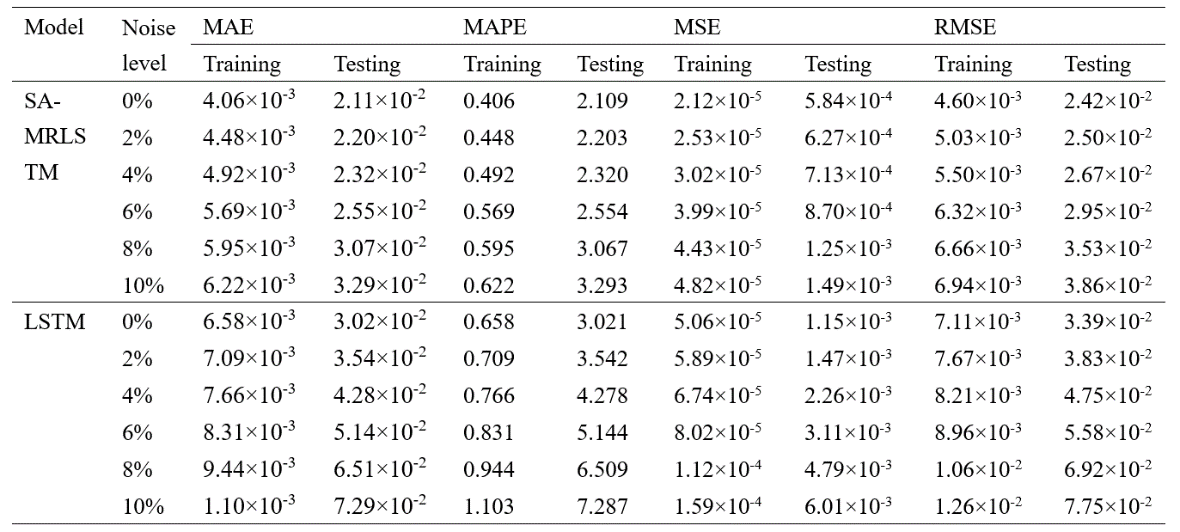 表2 不同测量噪声下的模型训练和测试结果