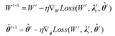 在未知的情况下,训练机理正则化部分的问题变成了半监督学习任务。具体实现方法为通过最大化关于自适应权重的损失并最小化关于网络权重和参数估计的损失来获得一致性参数估计: