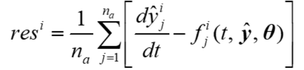 MRLSTM的机理正则化部分定义为下式。其中,na为解空间中随机分布的配置点数量。显然,resi表示第i个常微分方程与模型输出在na个配置点下的残差之和。