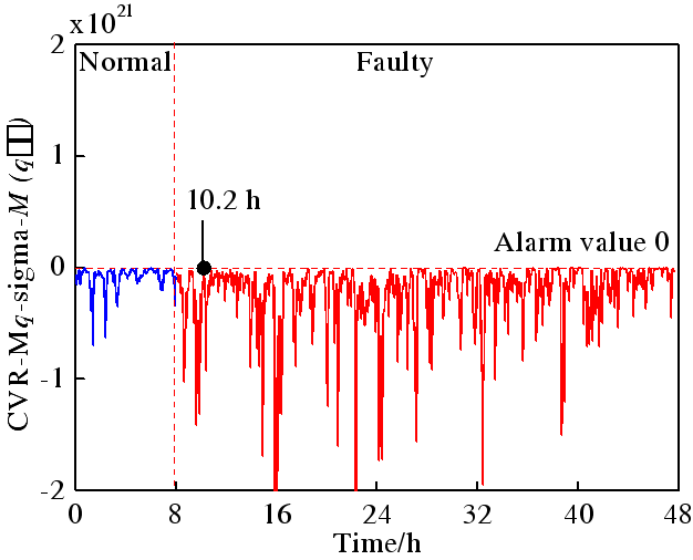 数值实验表明,本文提出的方法能最早地检测出早期故障,且误报率最低。结果还表明:(1)早期故障的过程变异主要分布在1-sigma到3-sigma之间或−1-sigma和−3-sigma之间,严重的过程变化分布在3-sigma或−3-sigma以外。(2) 传统的方法侧重于低误报率,控制限较大,对早期故障不敏感。检测延迟可以以高误报率的代价降低。(3) 多变量q-sigma考虑每个变量的控制限值和几个连续点的变化。它能以较低的误报率实现早期检测故障。
