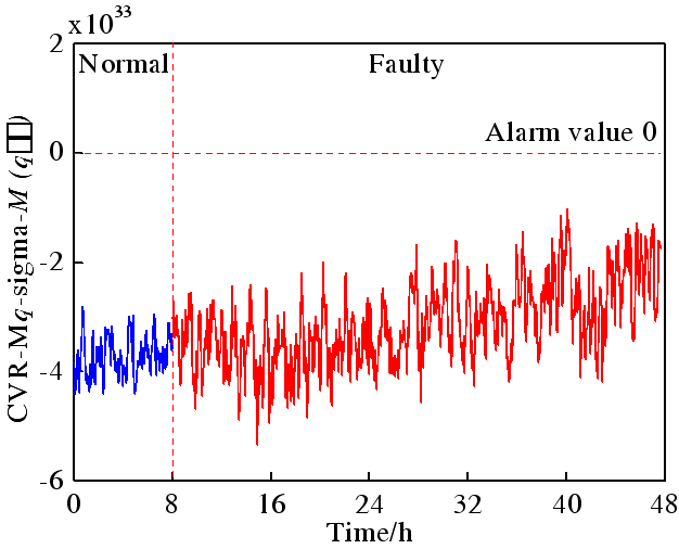 化工过程中最重要的方面是保证系统的稳定运行。然而,由于干扰和设备老化,故障是不可避免的。大多数故障都有从早期故障到严重故障的演化过程。因此,应及早发现故障,以保证系统的稳定运行。当系统稳定时,状态变量会在其稳态或均值附近波动;当故障发生时,会出现过程变异,即一些状态变量受其影响而偏离原来的轨迹,过程残差会从零向一侧偏倚。传统的方法在保证较低误报率的情况下会导致对故障的不敏感和较大的故障检测时间。另一方面,传统的方法大都基于马氏距离或者欧式距离,从空间距离信息的角度来对过程进行监测,这会导致误诊断的出现,例如当考虑故障为连续六个点的报警时,传统的方法可能出现这六个点不是来自同一个变量的情况,那么该情况不能视为故障,应该为误报。