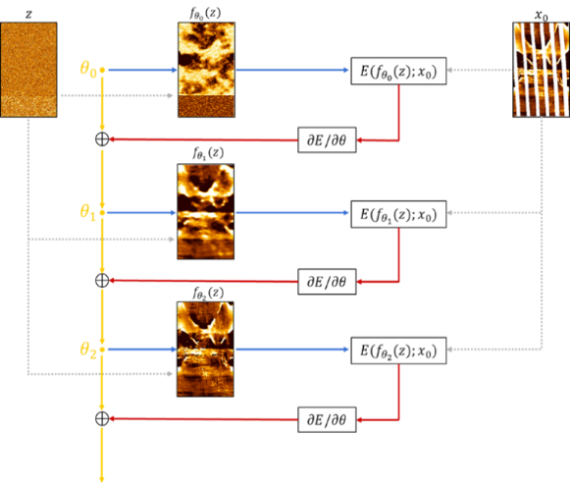 ,即最小化输入的非空白带区域的电阻率数据与网络生成输出的非空白带区域的电阻率数据之间的差异,旨在让模型学习到从噪声