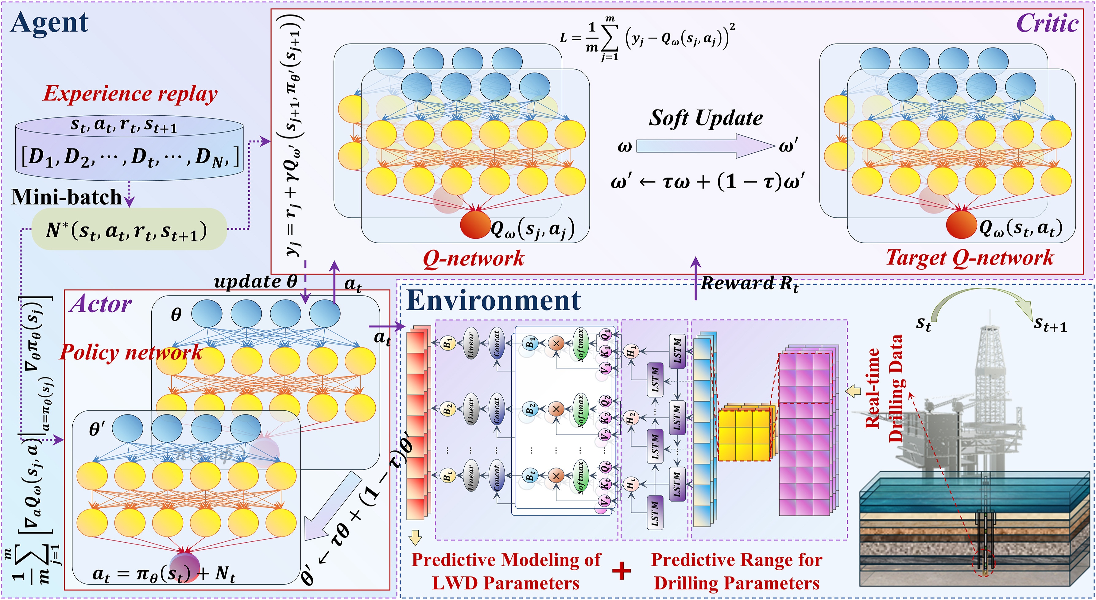 在全球能源转型的背景下,优化深水油气钻井参数对确保安全和提高效率至关重要。传统的钻速经验方程基于简化的物理假设,无法全面描述复杂的钻井过程。尽管神经网络模型能够捕获复杂的非线性关系,但其不透明性限制了模型的可解释性和泛化能力。此外,仅依赖随钻测井参数进行钻井参数优化存在固有局限性。数据获取通常在钻井活动发生后,导致实时参数调整无法达到预期效果。这些方法未充分考虑钻井作业中的滞后效应,亦未能动态适应不同钻进阶段的需求。钻井过程中的多目标优化还面临地质环境复杂性和不确定性的挑战,使得优化问题高度动态且非线性。传统算法难以及时响应地层变化,实时调整钻井参数,导致计算效率低下和响应能力不足。这使得同时实现提高钻速与优化能耗等多个目标变得具有挑战性。