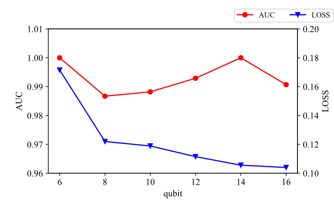 图6 多量子比特纠缠系统的LOSS和AUC