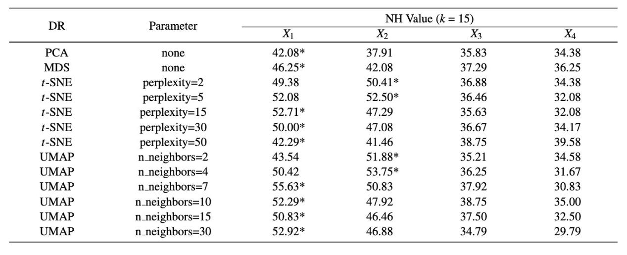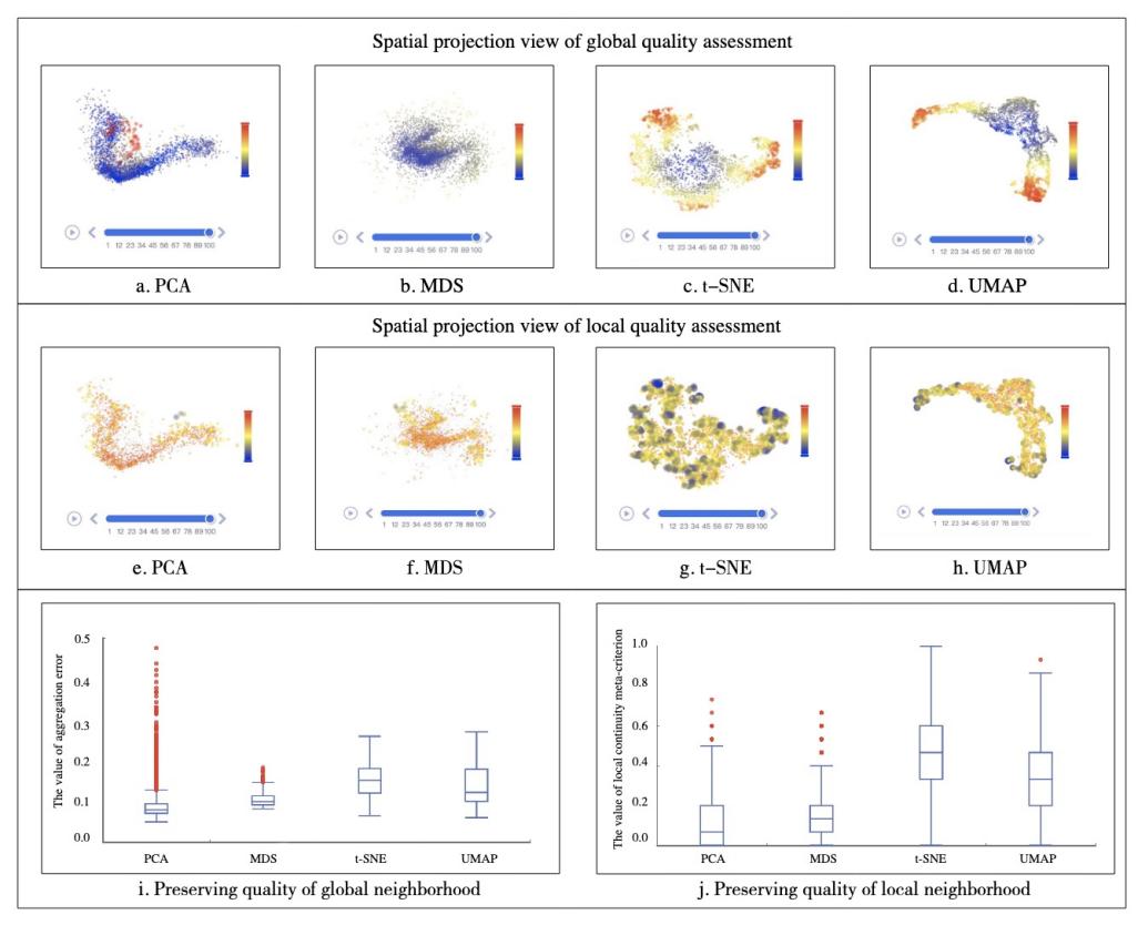 面向五种典型LSTM可视分析任务场景,文中通过多组对照实验定性和定量比较了四种DR技术的表现性能和效果。