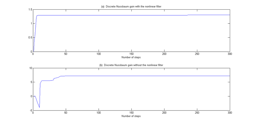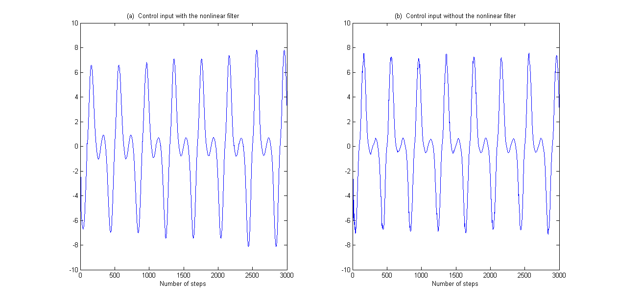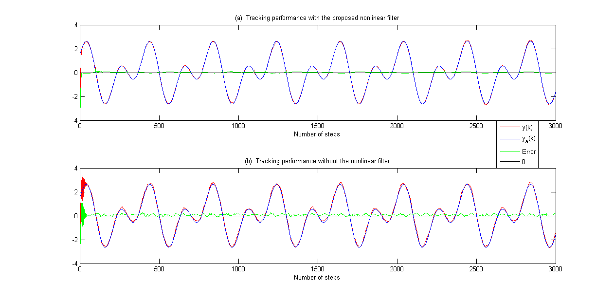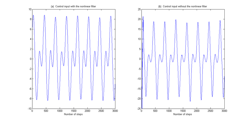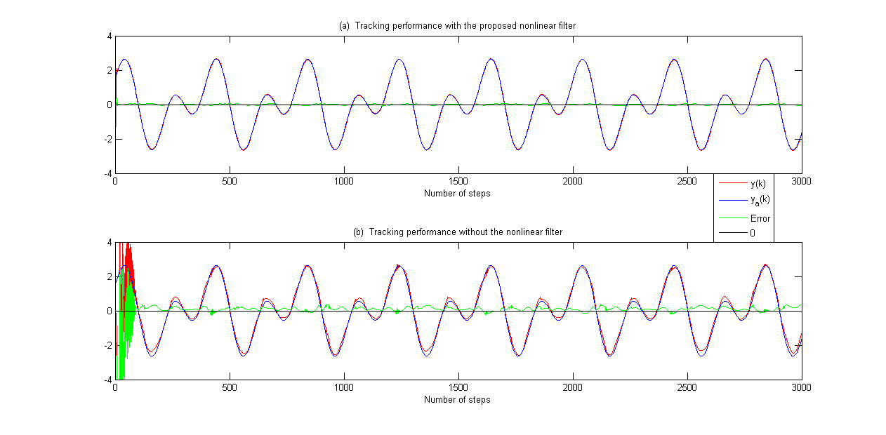 此外,还将所提出的非线性滤波器的结果与使用通用自适应方法提供的结果进行了比较。比较结果如图4-6所示。图 4 显示了跟踪性能的比较。输入有界性和离散Nussbaum增益分别如图5和图6所示。
