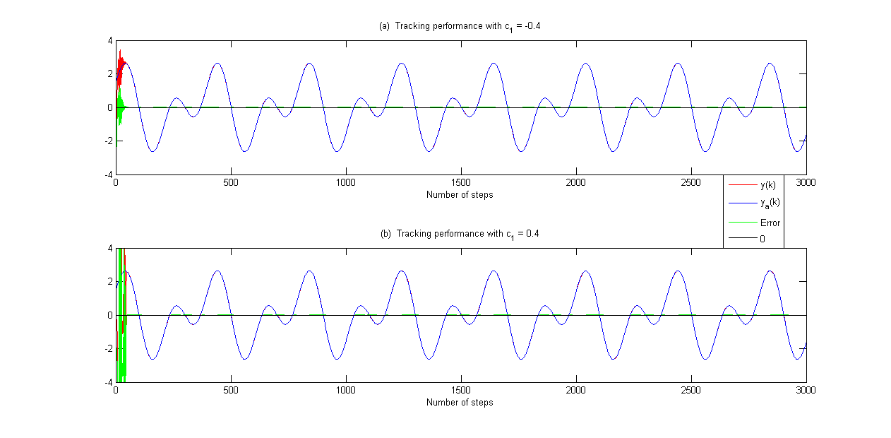 1.无论c1 > 0还是c1 < 0,基于非线性滤波器的自适应控制方法都能比一般自适应控制方案更准确地显示跟踪性能;
