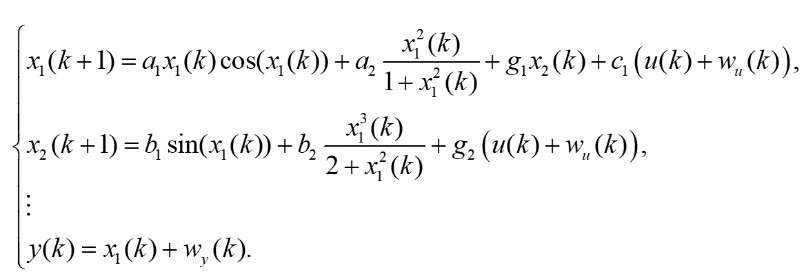 例2:在存在输入噪声和输出噪声的情况下,考虑一个类似的离散非线性系统: