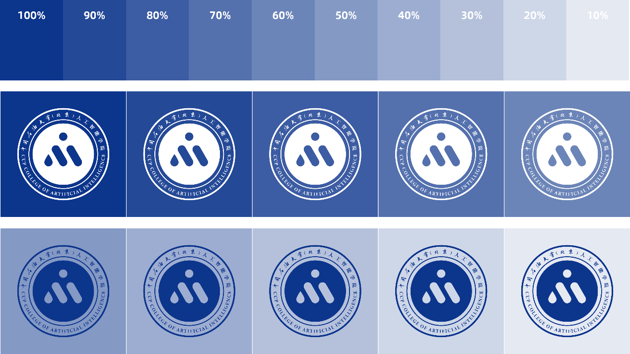为适应不同场合、环境、工艺材料、尺寸范围需要,在院徽的基础上设计与标准字组合的形式,称为人工智能学院完整标识。