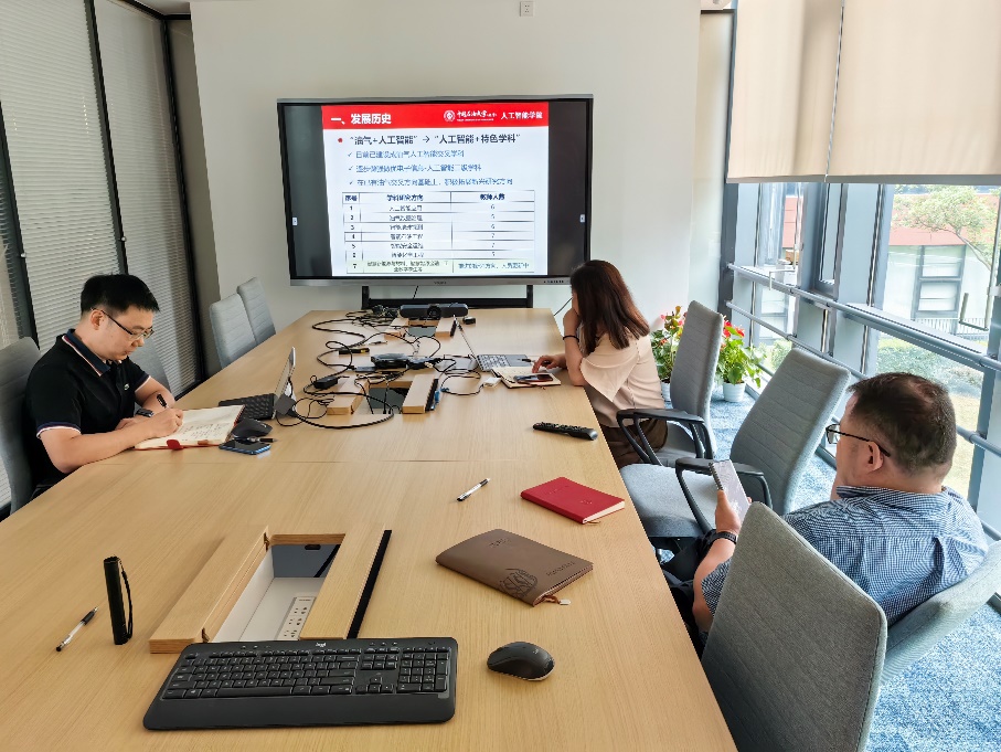 为深入推进习近平新时代中国特色社会主义思想主题教育学习,结合迎接校庆70周年与探索发展人工智能领域学科建设新模式,9月5日上午,中国石油大学(北京)人工智能学院副院长林伯韬教授、院长助理廖广志教授一同前往同济大学上海自主智能无人系统科学中心交流访问。同济大学上海自主智能无人系统科学中心执行主任何斌教授、建设领导小组办公室副主任王祝萍教授对中国石油大学(北京)人工智能学院教师的到访表示欢迎。林伯韬介绍了中国石油大学(北京)人工智能学院的发展概况和学科建设思路。何斌介绍了上海自主智能无人系统科学中心智能科学与技术博士点的建设思路和经验。双方针对交叉学科博士点申报及科研合作等相关工作展开深入讨论。随后,何斌主任带领参观了自主智能无人系统全国重点实验室、上海智能无人系统科学中心,介绍了“自主与感知”、“智能与涌现”、“协同与群智”等技术的发展现状和未来需求。