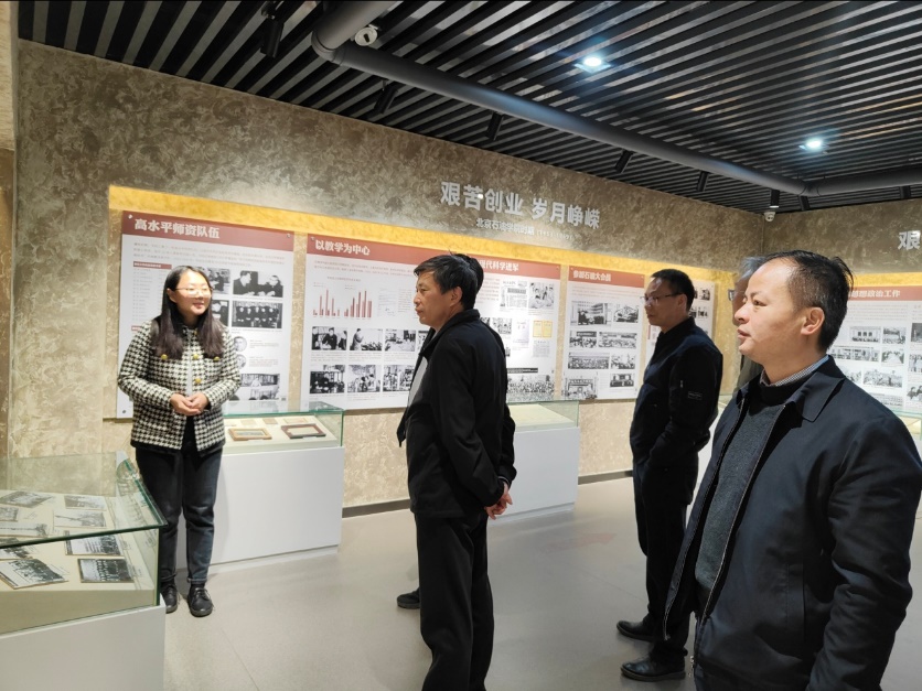 3月21日,西安石油大学副校长杨战社一行在中国石油大学(北京)基建处负责人陪同下参观了校史馆。