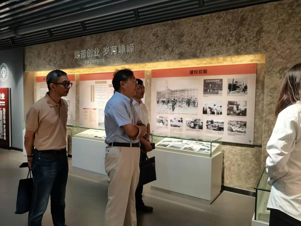 7月26日上午,中国华油集团副总经理周旭一行4人,在中石大地层微生物资源与应用研究中心副主任万云洋陪同下参观了校史馆。