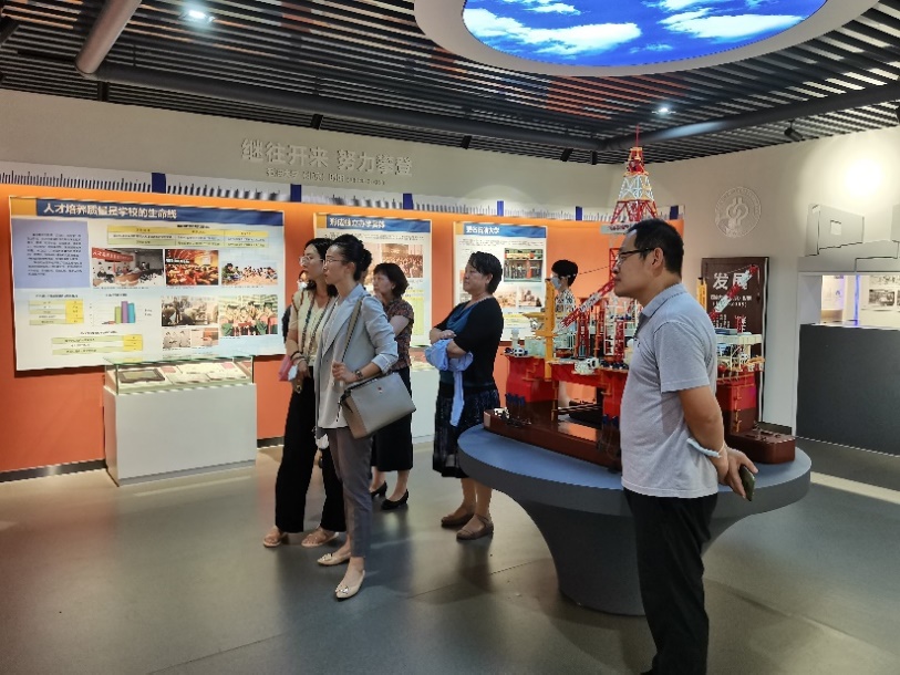 7月22日上午,国家图书馆知识产权信息服务中心负责人及相关工作人员一行7人,在中石大图书馆石油情报中心主任张芹的陪同下参观了校史馆。