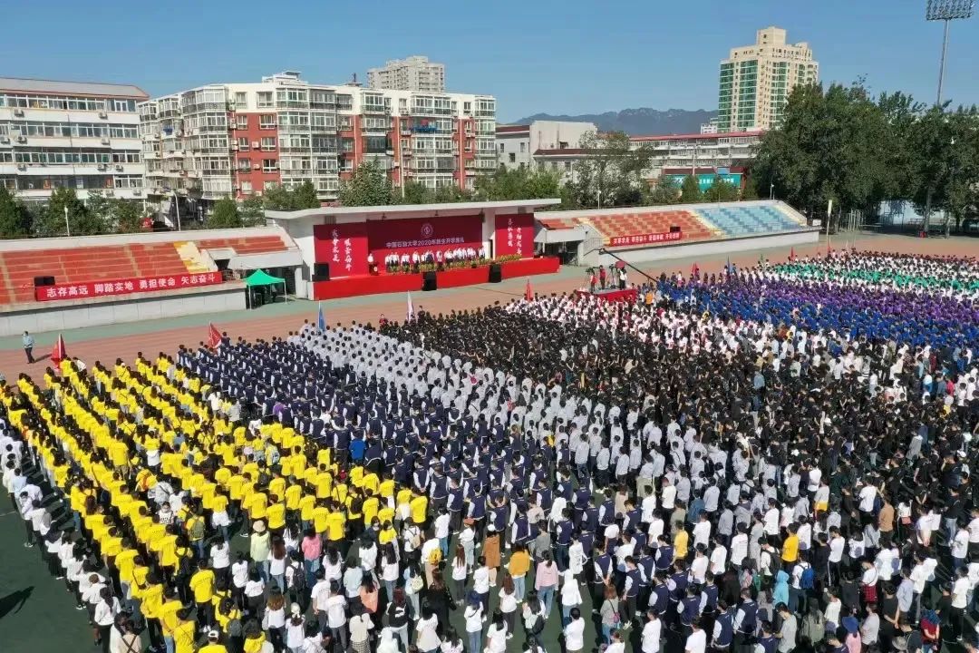 在中国石油大学(北京)克拉玛依校区红旗操场举行的2017级新生军训结训典礼