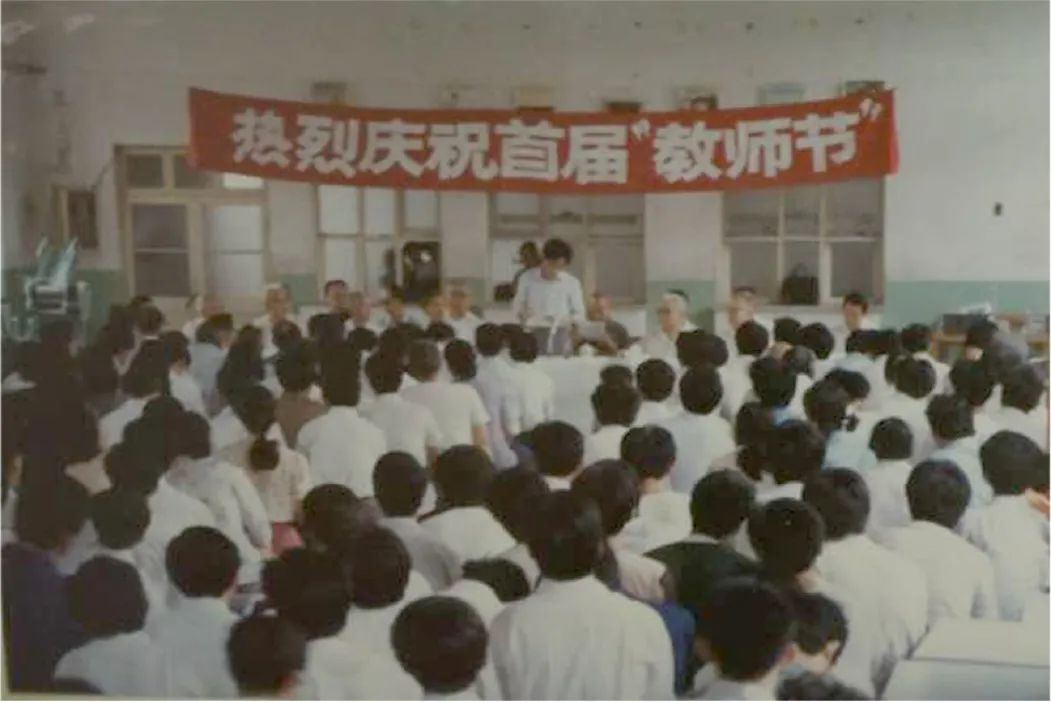 1985年,学校举办首届教师节庆祝大会