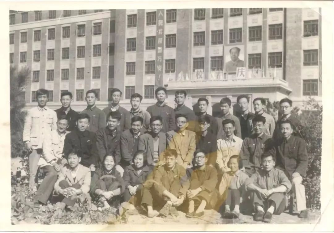 北京石油学院校庆十周年时力学教研室全体教师在主楼前合影