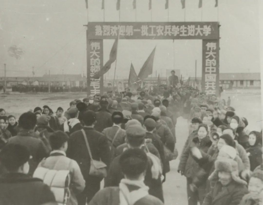 华东石油学院第一批工农兵学员入校场景