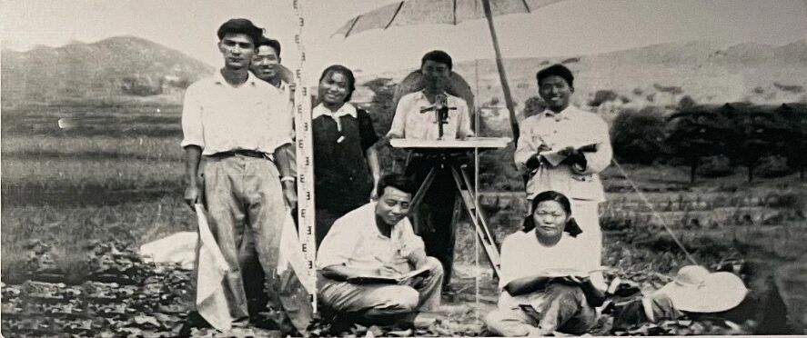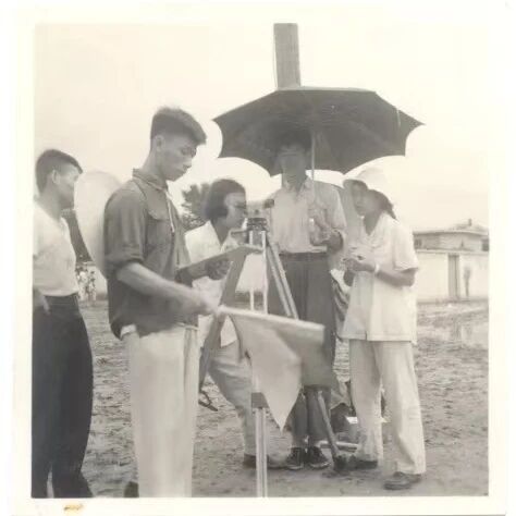 1956年暑假,学校钻采系1955级学生在唐山进行大地测量实习(左一为王德民)