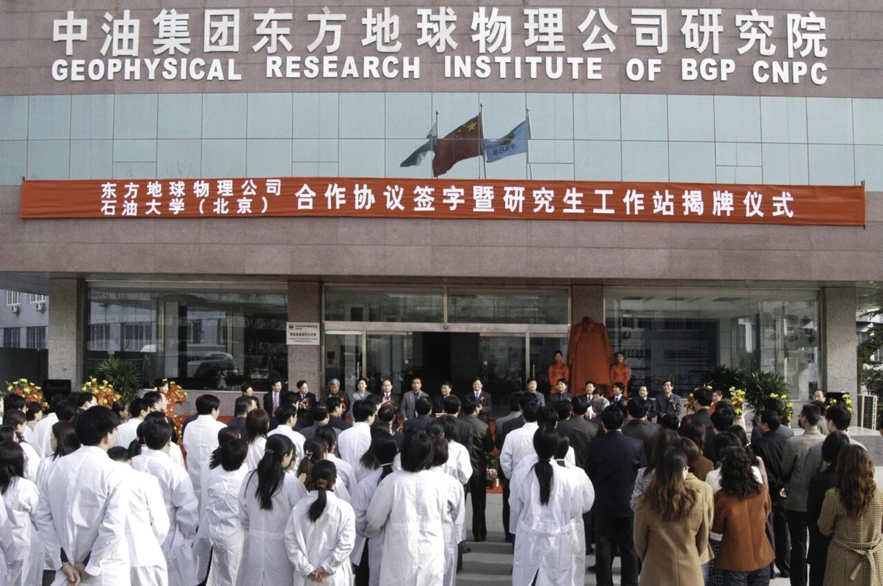 2004年,学校与东方地球物理公司合作协议签字暨研究生工作站揭牌仪式
