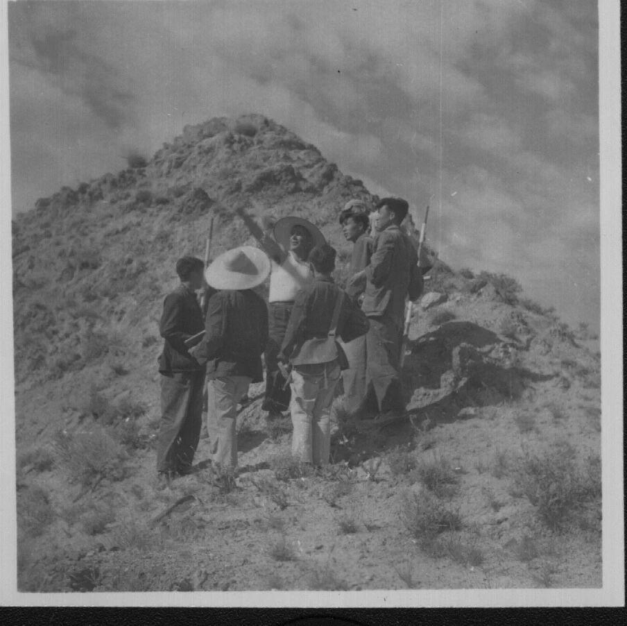 1963年,严大凡老师带领储运专业1958级学生在玉门油矿石油沟开展实习