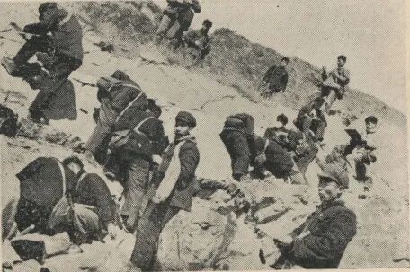 北京石油学院地质系学生在野外进行地质实习