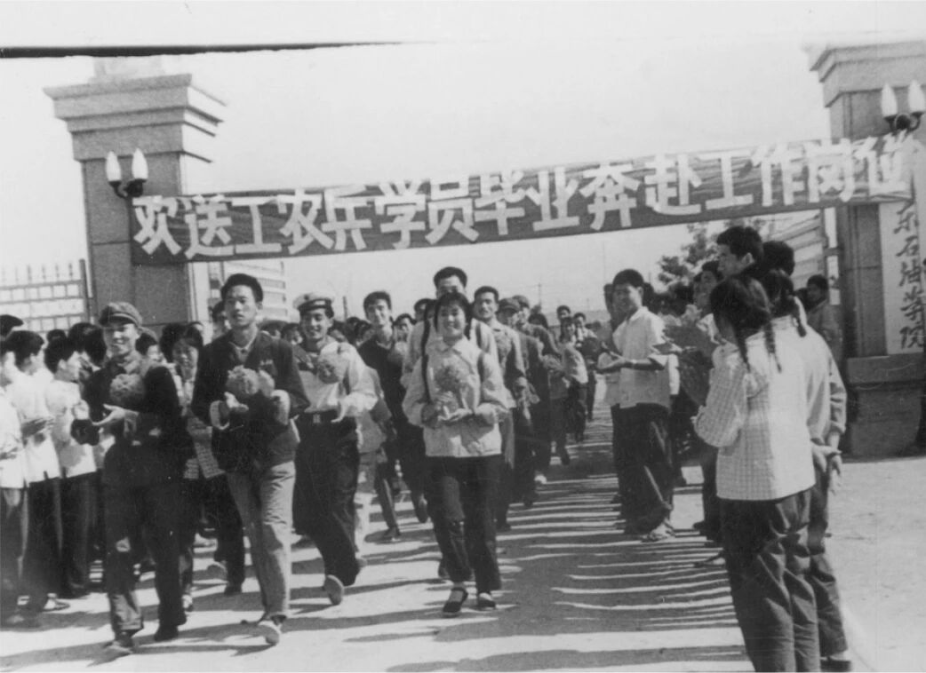 1969年10月,北京石油学院搬迁誓师大会迁校后,教职工开始自己动手建设校园