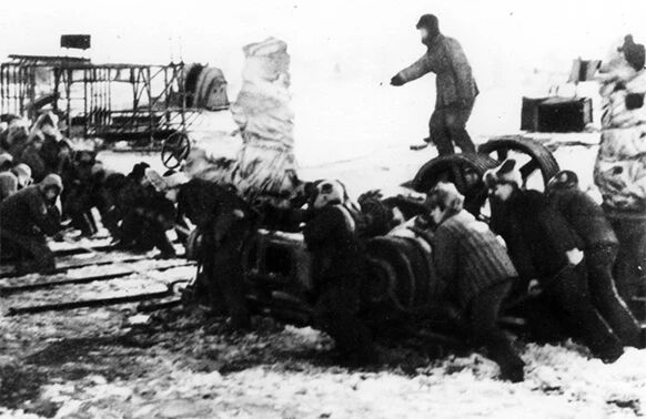 大庆石油会战初期,工人们争分夺秒人拉肩扛运输安装生产设备