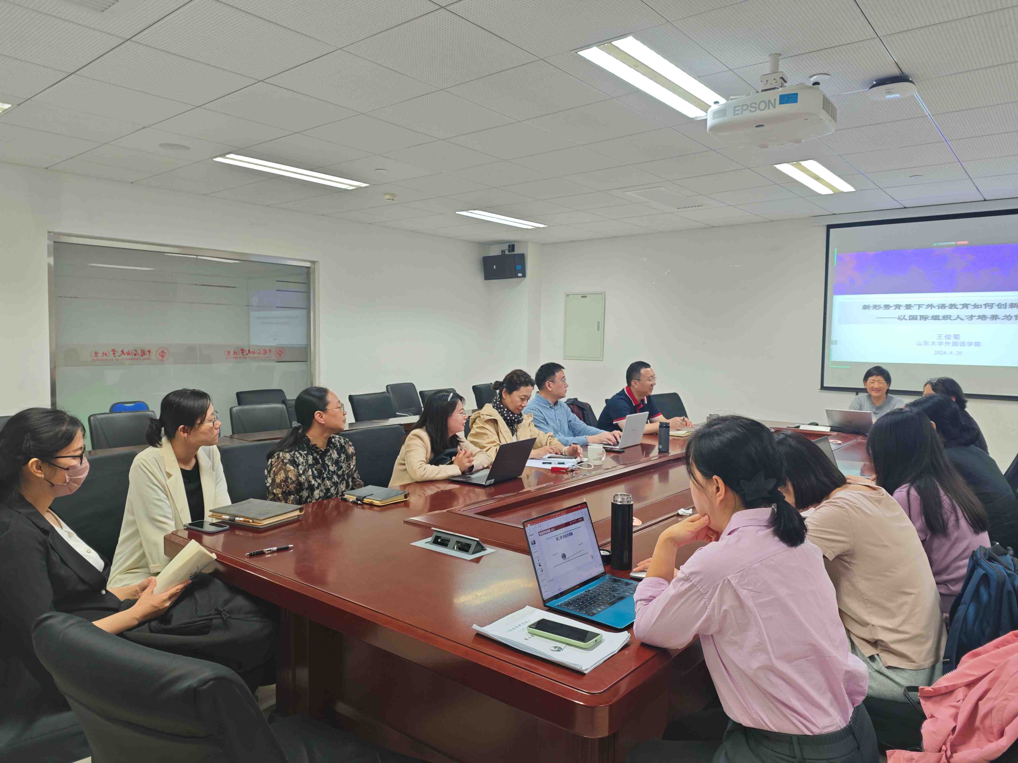 9月20日,外国语学院举行专题学术讲座。山东大学二级教授,全国新文科教育研究中心副主任,原外国语学院、翻译学院院长王俊菊应邀以“新形势背景下外语教育如何创新发展”为题主讲,学院院长赵秀凤主持讲座,副院长逯义峰及数位教师代表参加讲座。