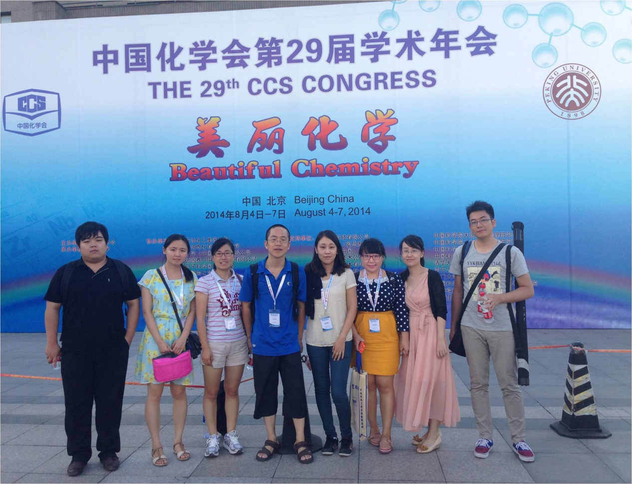 中国化学会第29届学术年会于2014年8月4-7日在北京大学召开,借此机会,中国石油大学(北京)地质微生物实验室万云洋教授带领课题组博士和硕士生一行9人参加在北京大学召开的中国化学会第29届年会。万云洋获邀作了《三位一体链式教育的基础实践》口头报告、穆红梅博士生作口头报告、田燕博士生获优秀墙报奖,总共9篇论文参加,获得组委会的高度好评,获邀参加开幕晚宴。