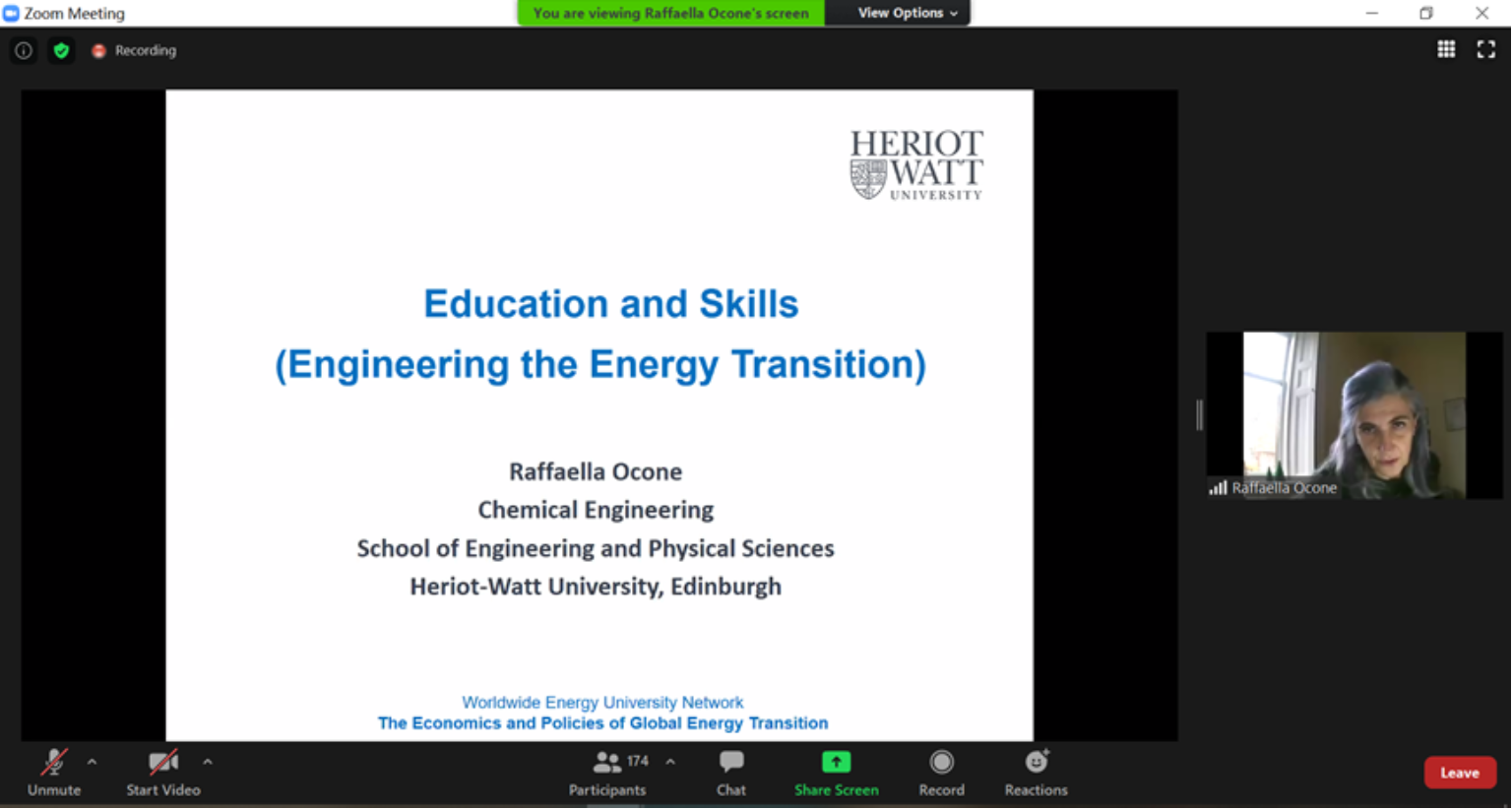 The global economy is experiencing a transition from high-carbon energy resources to low-carbon resources. Following EU and UK's commitment to cut carbon emissions to net-zero by 2040-2050, the recent announcement by President Xi Jinping that China aims to reach carbon neutrality by 2060 has once again stunned the world. The move to net-zero will undoubtedly provide both challenges and opportunities for the global energy system and have profound impact on energy education and research. In this context, on 8th December 2020, the secretariat of the Worldwide Energy University Network (WEUN), in collaboration with University of Dundee and China University of Petroleum-Beijing, organizedthe webinar on economics and policies of global energy transition. The webinar was moderated by Dr. Xiaoyi Mu from the Centre for Energy, Petroleum and Mineral Law and Policy (CEPMLP), University of Dundee.